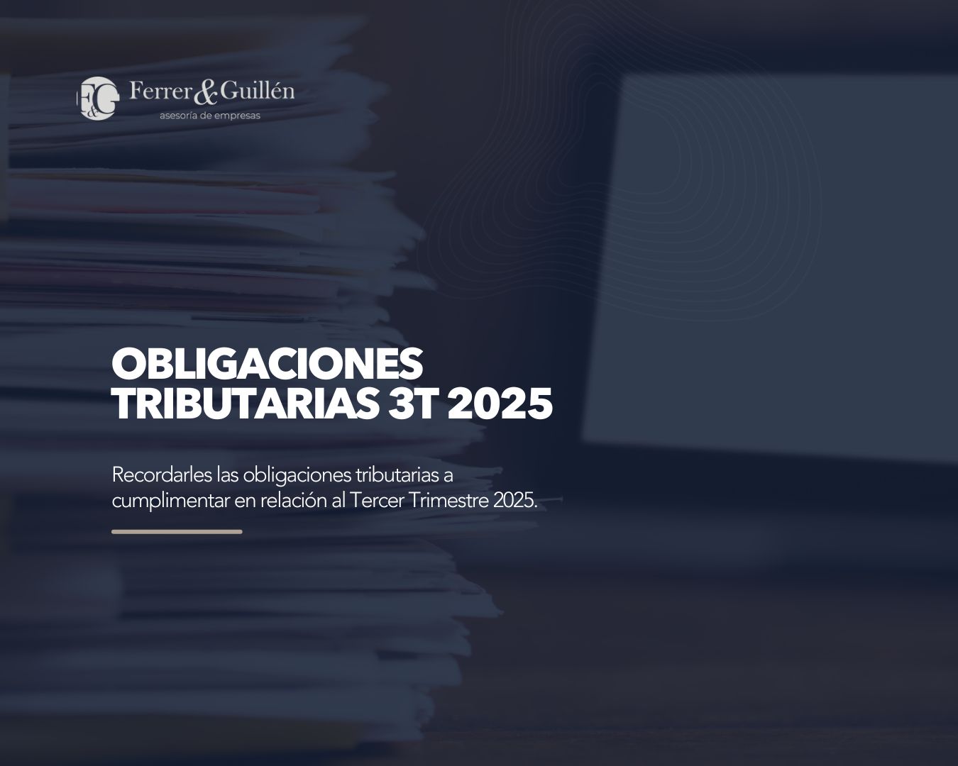 Desde Ferrer Guillén Asesores queremos recordar a nuestros clientes la relevancia de cumplir puntualmente con las principales obligaciones tributarias correspondientes...